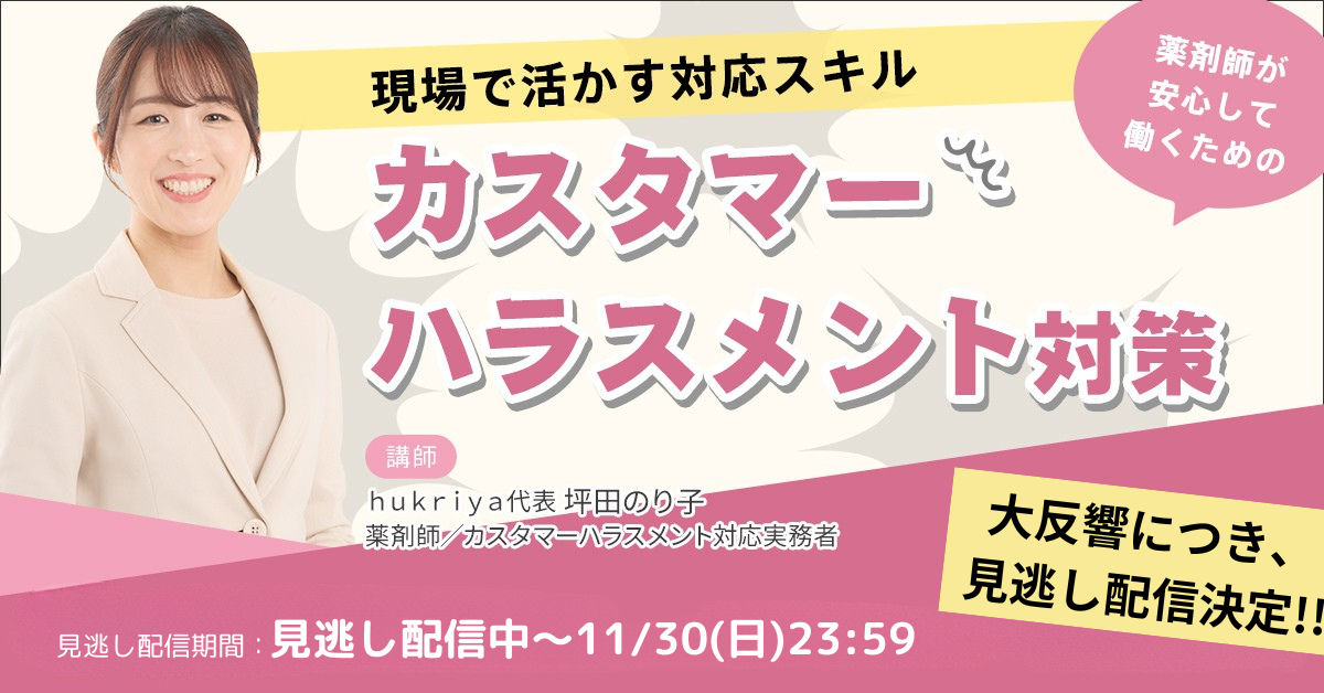 【見逃し配信中~11/30まで】薬剤師が安心して働くためのカスタマーハラスメント対策