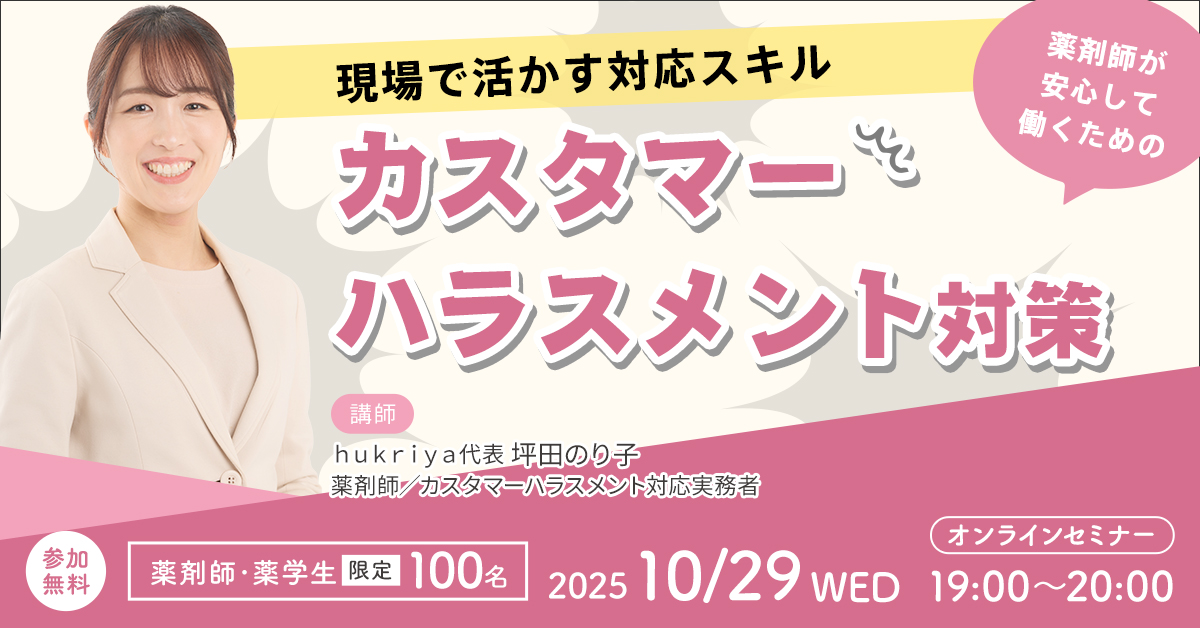 【10/29開催】薬剤師が安心して働くためのカスタマーハラスメント対策